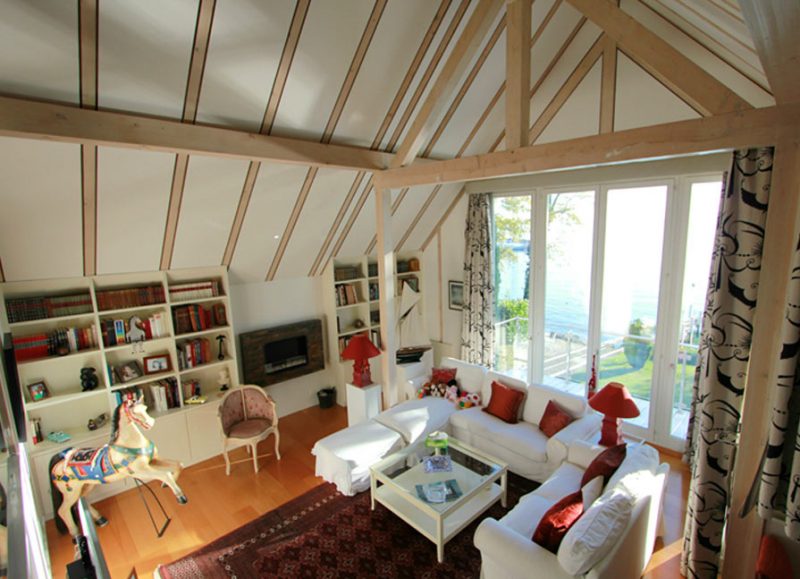 1 large bright bedroom with bathroom – shower, jacuzzi and hammam | 1 large living room with fireplace – balcony access – stunning lake view