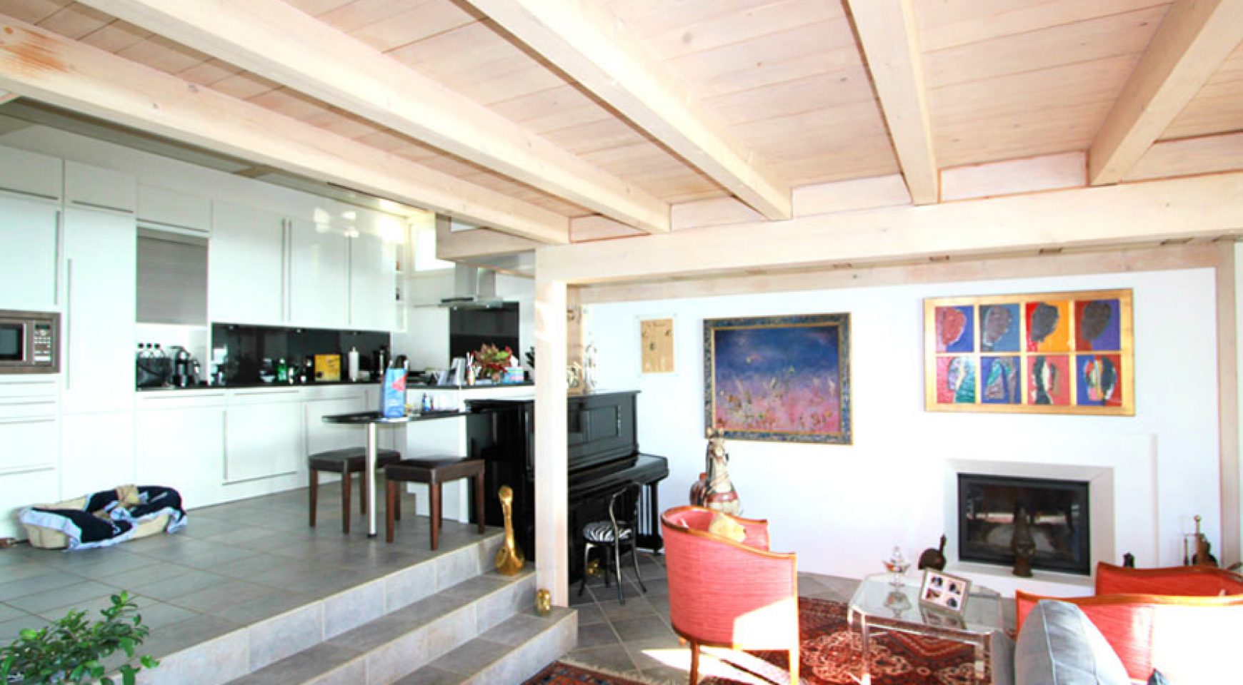 1 large living room with fireplace and access to the terrace and garden or possibility to make a dining room adjoining the kitchen | 1 dining room with fireplace and access to the terrace and the garden or possibility of making a room | 1 large office and dressing room or possibility of making a room | 1 bathroom – shower | 1 guest WC | 1 technical room and laundry room